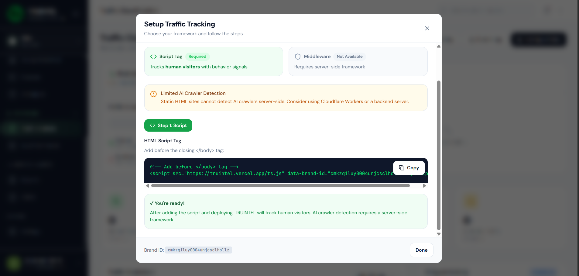 Copy and paste one line of code to your website. Works with any platform.